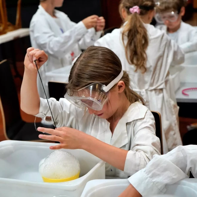 Zajęcia naukowe, podczas których uczestnicy wcielają się w młodych badaczy i odkrywają świat poprzez spektakularne doświadczenia z pogranicza chemii, fizyki, biologii, ekologii i nauk przyrodniczych. Tutaj reakcje naprawdę zachodzą: substancje zmieniają swoje właściwości, pojawiają się efekty energetyczne, a prawa nauki przestają być jedynie teorią — stają się widoczne, mierzalne i… zaskakujące.