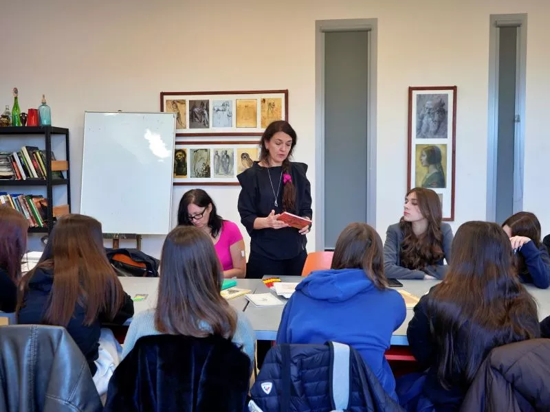 Podczas spotkania młodzież miała okazję poznać artystkę oraz wysłuchać opowieści o jej twórczości, łączącej różne dziedziny sztuki – literaturę, muzykę, teatr i sztuki wizualne. Następnie przyszedł czas na część praktyczną, w której uczestniczki, inspirując się tekstami literackimi, malarstwem i własnymi refleksjami, samodzielnie tworzyły memy o charakterze artystycznym i literackim.