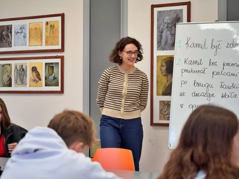 Za nami warsztaty literackie „Pokaż, nie mów”, na których rozmawialiśmy o tym, jak pisać, żeby inni chcieli nas czytać, i jak wciągnąć czytelnika do naszego świata, aby nie chciał z niego wyjść. Staraliśmy się przekształcać suche fakty w literackie opisy, pobudzaliśmy wyobraźnię i nasze zmysły. Sprawdzaliśmy, co słychać w lesie i czym pachnie strych, a także jak wygląda niecierpliwość. Było pomysłowo, zaskakująco i przede wszystkim – twórczo!