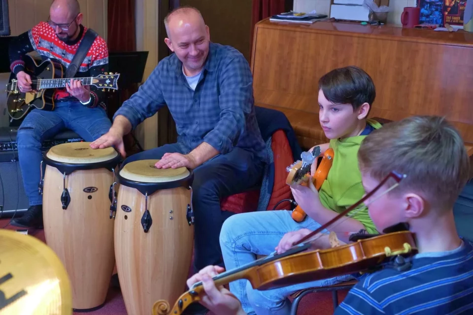 Uczestnicy uczą się świadomego współtworzenia brzmienia zespołu, rozwijają umiejętności komunikacji muzycznej, improwizacji oraz pracy nad dynamiką i formą utworu. Istotnym elementem zajęć jest aranżacja – opracowywanie własnych wersji utworów oraz dostosowywanie materiału do konkretnego składu wykonawczego. W ramach zajęć realizowane są także podstawy kompozycji, obejmujące budowanie struktur muzycznych, pracę z harmonią, rytmem i melodią.
